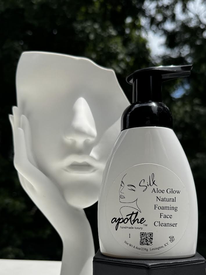 Apothe's Aloe Glow anti-stress cleanser is formulated with the soothing essence of Aloe Vera and an exquisite blend of premium essential oils. This gentle foaming cleanser effortlessly lifts away impurities while preserving your skin's delicate balance. Like all of Apothe's skincare, this cleanser is designed for all skin types, including sensitive skin. Our lightweight formula will leave your face feeling refreshingly clean, soft and radiant.